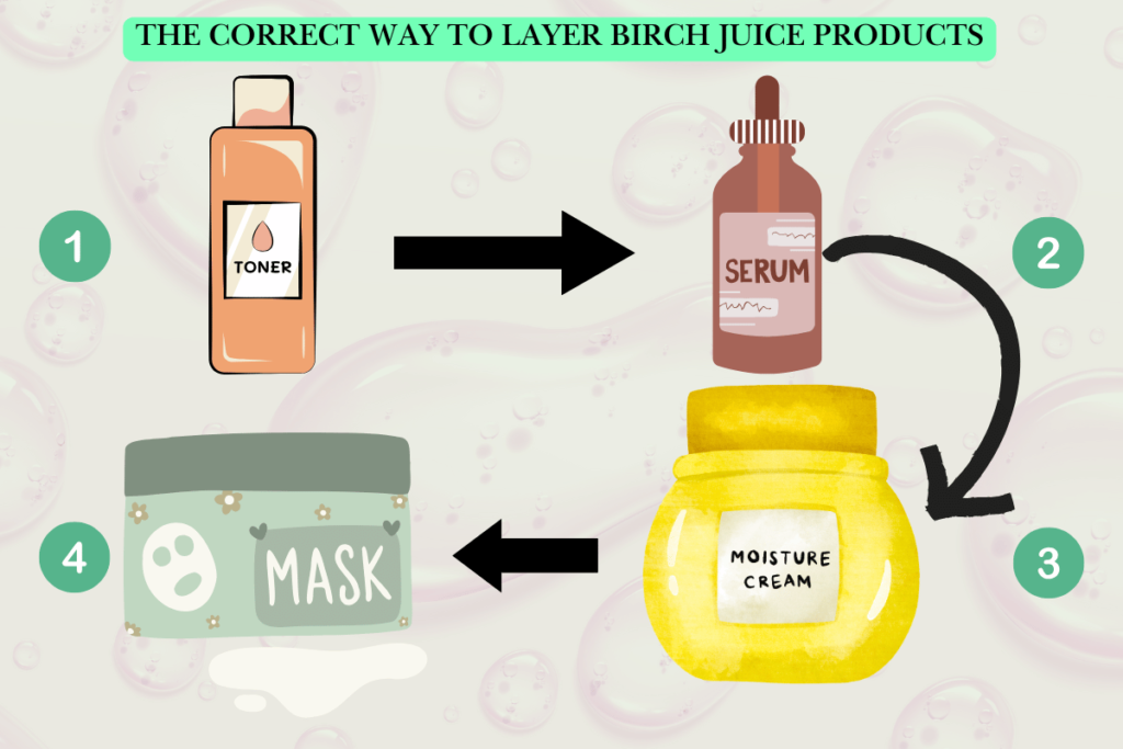 Now that we know the amazing benefits of birch juice, let’s explore how to use it in your daily skincare routine for maximum hydration, barrier repair, and glow. Whether you want to replace your current hydrator or simply add it to your routine, there are multiple ways to reap the benefits of this powerhouse ingredient.