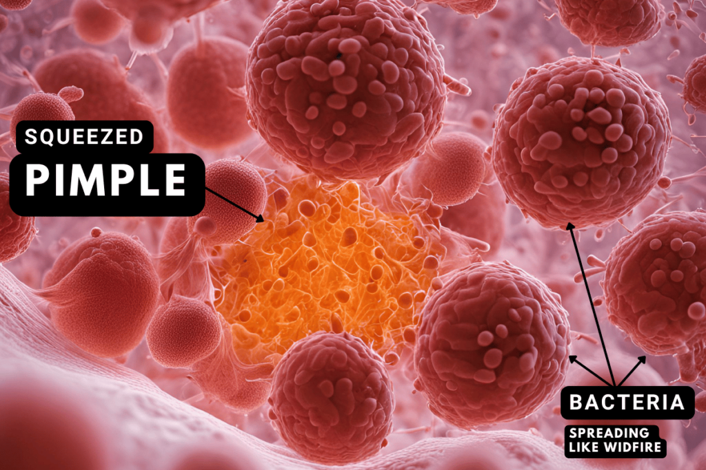 - Pushing Bacteria Deeper – Instead of fully extracting the pus, improper popping can push bacteria deeper into the pore, creating an even bigger and more painful pimple.
